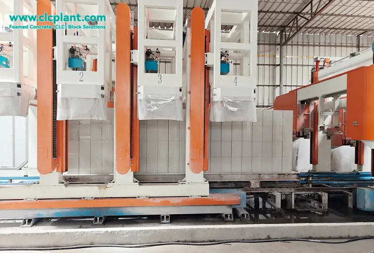 From raw material measurement, mixing and pouring to cutting and maintenance, palletizing and packaging, the whole line adopts CNC automatic operation, which can be performed by ordinary workers, significantly reducing labor costs and improving production efficiency.